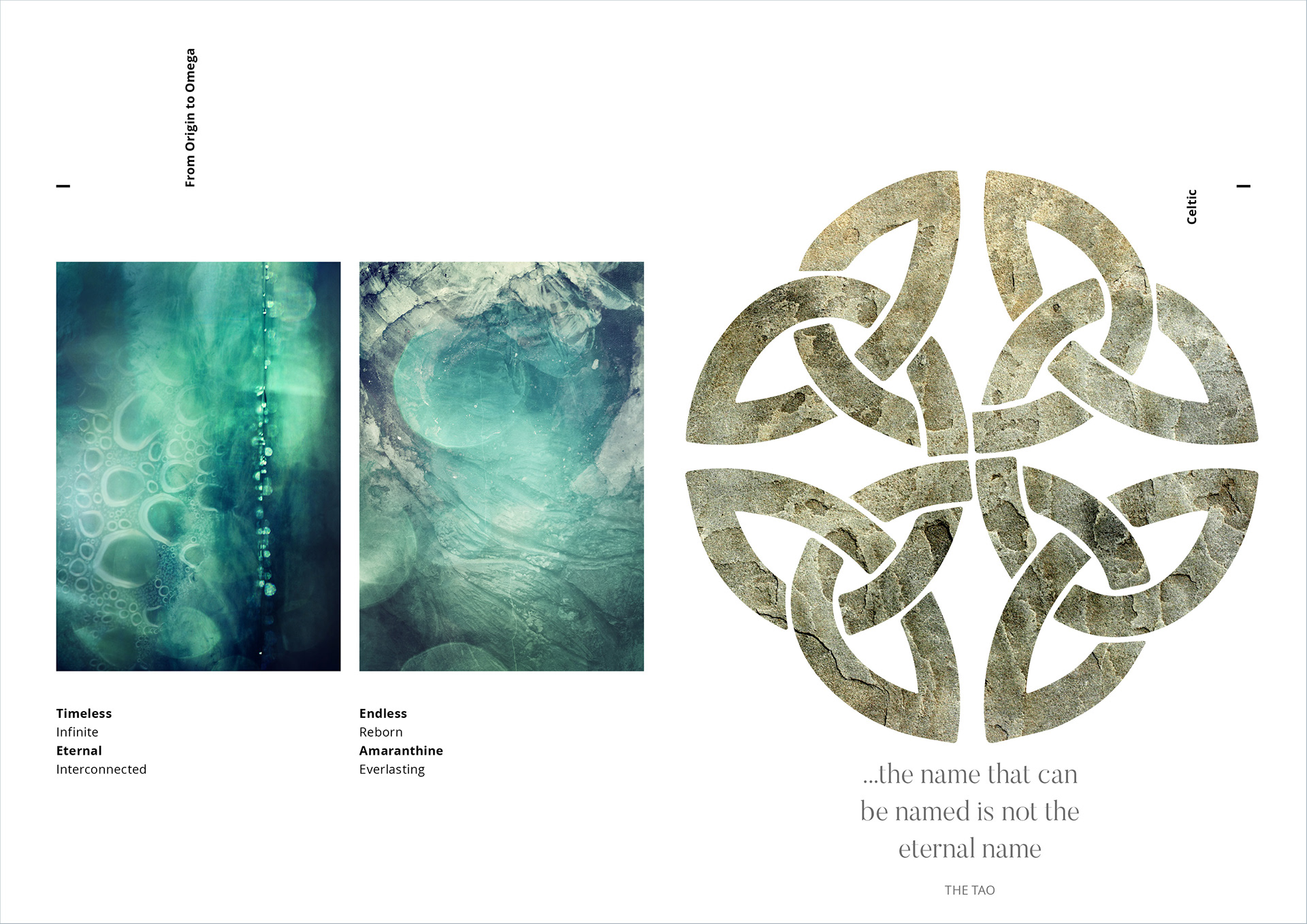 A project that reflects on the cycles of life and unifies disparate cultural symbols through the use of photographic textures and typographical signs.